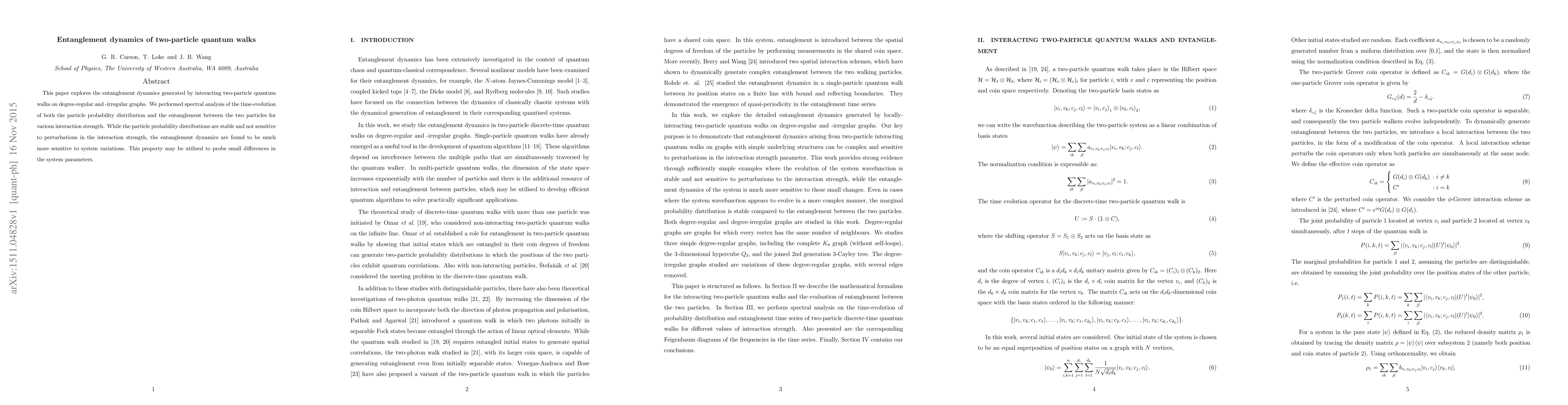 This paper investigates the entanglement dynamics of two-particle quantum walks on regular and irregular graphs, revealing that while particle distributions remain stable, entanglement is highly sensitive to interaction strength variations, potentially useful for detecting subtle system differences.