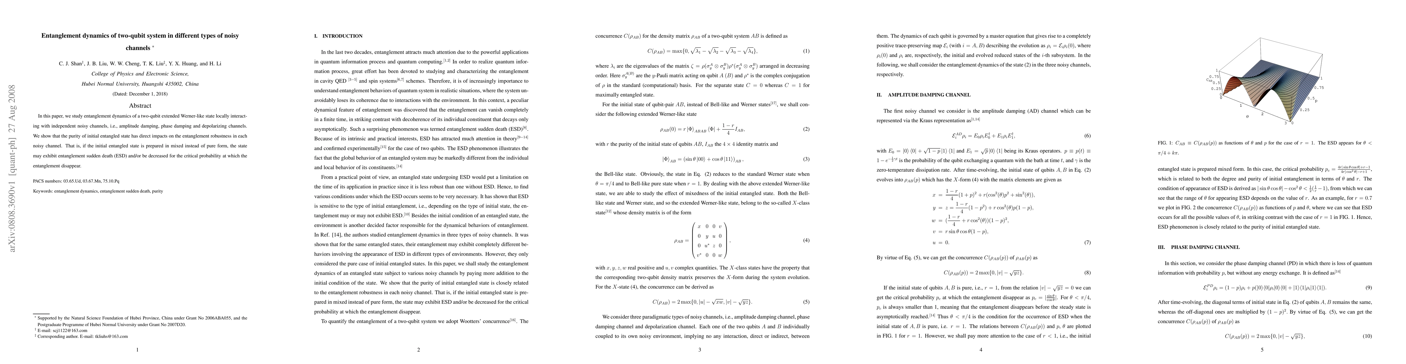 This paper investigates how different types of noisy channels affect the entanglement dynamics of a two-qubit Werner-like state. It finds that the initial state's purity directly influences entanglement robustness, with mixed states showing potential for entanglement sudden death and lower critical probabilities for entanglement loss.