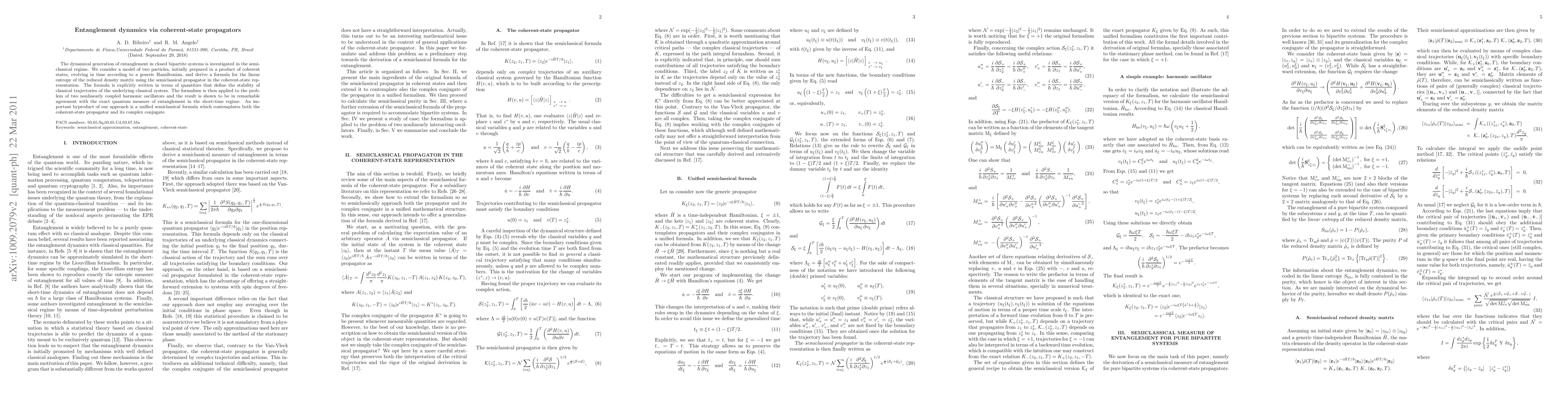 The paper presents a unified semiclassical formula for entanglement dynamics that incorporates both the coherent-state propagator and its complex conjugate, providing a direct measure of entanglement for pure bipartite systems.
