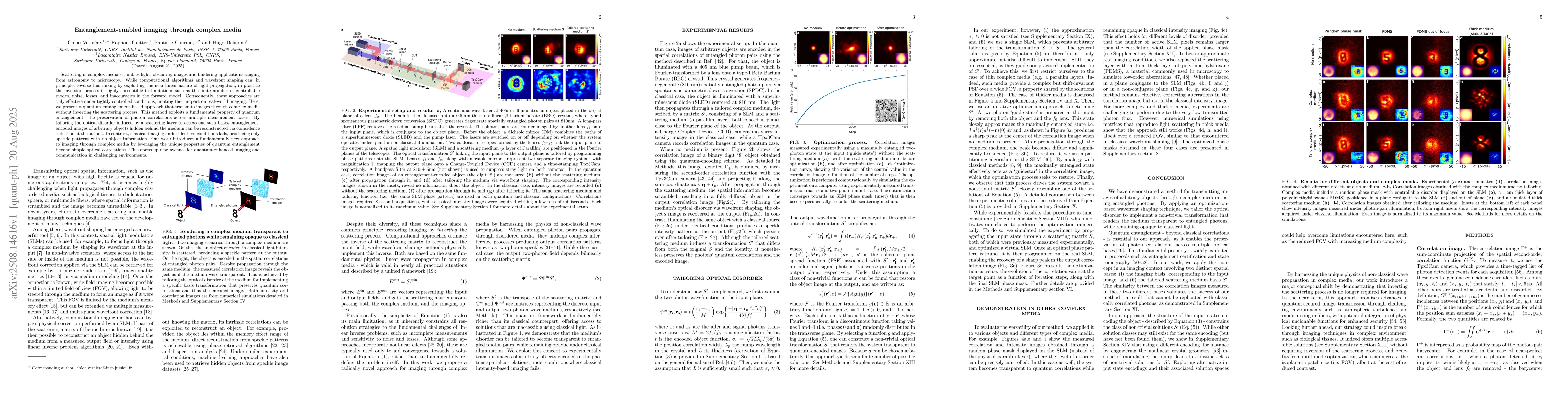 This research introduces a quantum entanglement-based method for imaging through complex, scattering media. Unlike classical approaches that struggle with scattering, this technique leverages entanglement to reconstruct images by preserving photon correlations, enabling clear object reconstruction even in highly disordered environments.