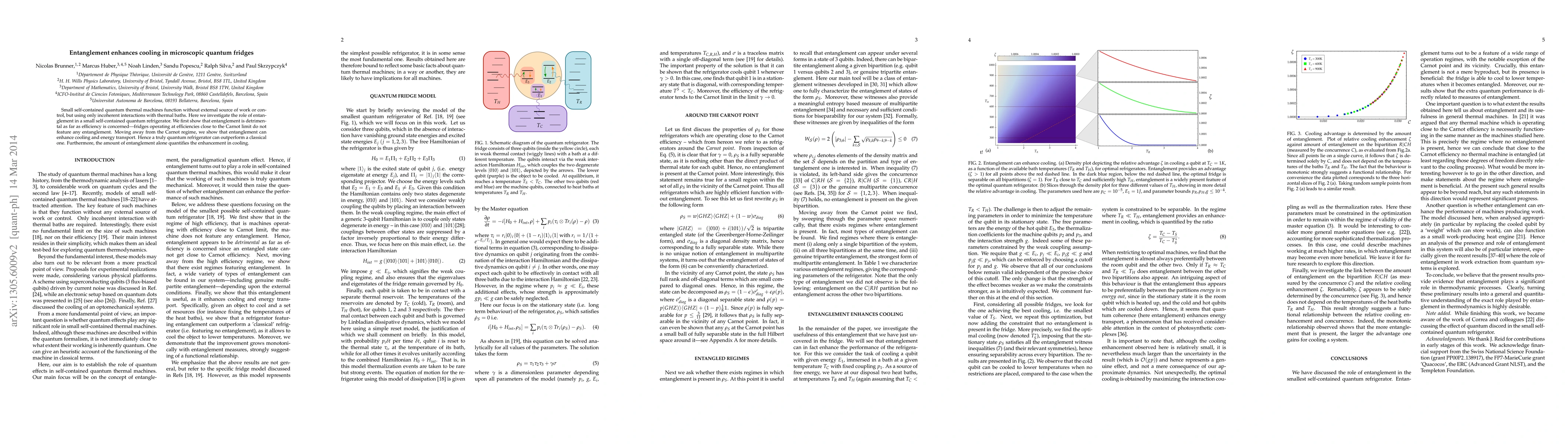 Small self-contained quantum thermal machines function without external source of work or control, but using only incoherent interactions with thermal baths. Here we investigate the role of entanglement in a small self-contained quantum refrigerator. We first show that entanglement is detrimental as far as efficiency is concerned---fridges operating at efficiencies close to the Carnot limit do not feature any entanglement. Moving away from the Carnot regime, we show that entanglement can enhance cooling and energy transport. Hence a truly quantum refrigerator can outperform a classical one. Furthermore, the amount of entanglement alone quantifies the enhancement in cooling.