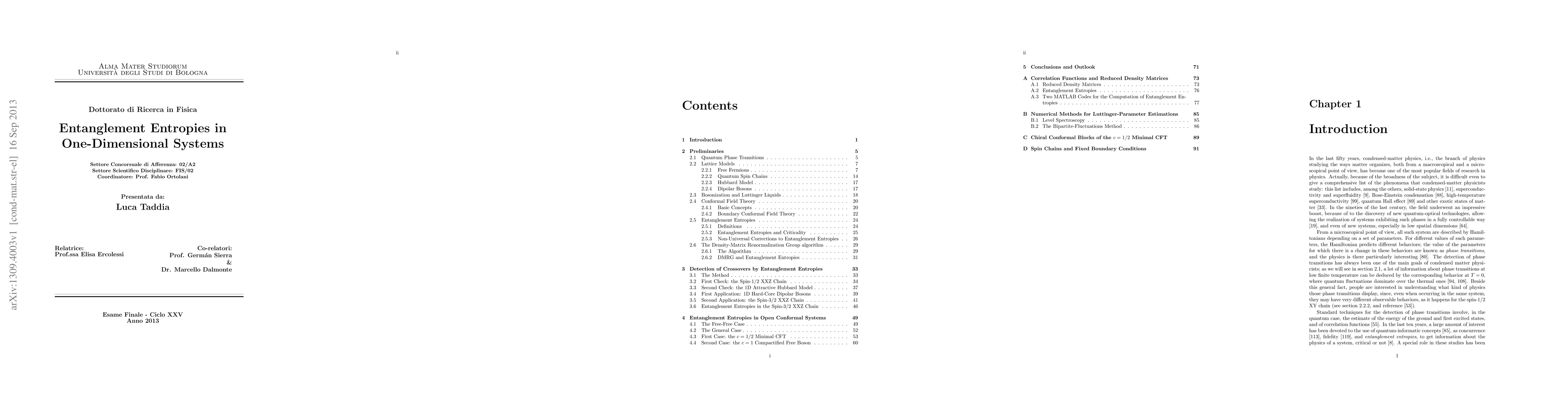 Entanglement entropies have revealed, in the last years, to be a powerful tool to extract information about the physics of condensed-matter systems. In the first part of this thesis, we show how to extract essential details about the quasi-long-range order of a one-dimensional critical systems by means of entanglement entropies. In the second part we show how to derive analytically the scaling of such quantities for critical systems, whose low-energy physics is described by a conformal field theory, in presence of general open boundary conditions that preserve the conformal invariance.