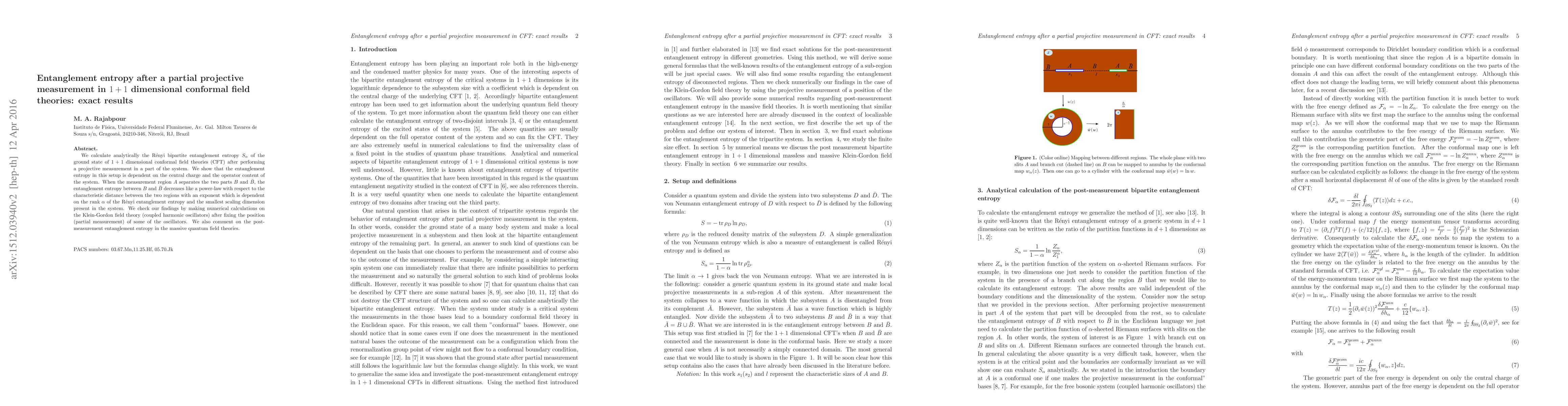 This paper analytically computes the Rényi entanglement entropy in $1+1$ dimensional CFTs after partial projective measurements, revealing a central charge and operator content dependence. The entanglement entropy between separated regions decreases as a power-law, with the exponent linked to the Rényi rank and the smallest scaling dimension.