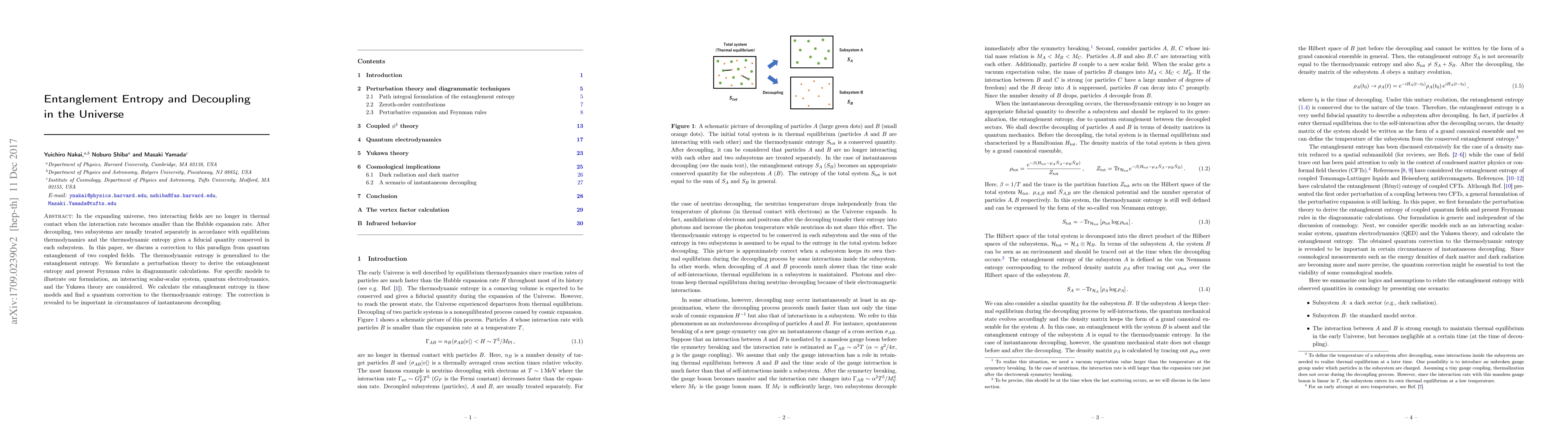 This paper explores how quantum entanglement affects entropy calculations in the universe after decoupling. It generalizes thermodynamic entropy to entanglement entropy and introduces a perturbation theory with Feynman rules to compute this correction, demonstrating its significance in models like scalar-scalar interactions and quantum electrodynamics.