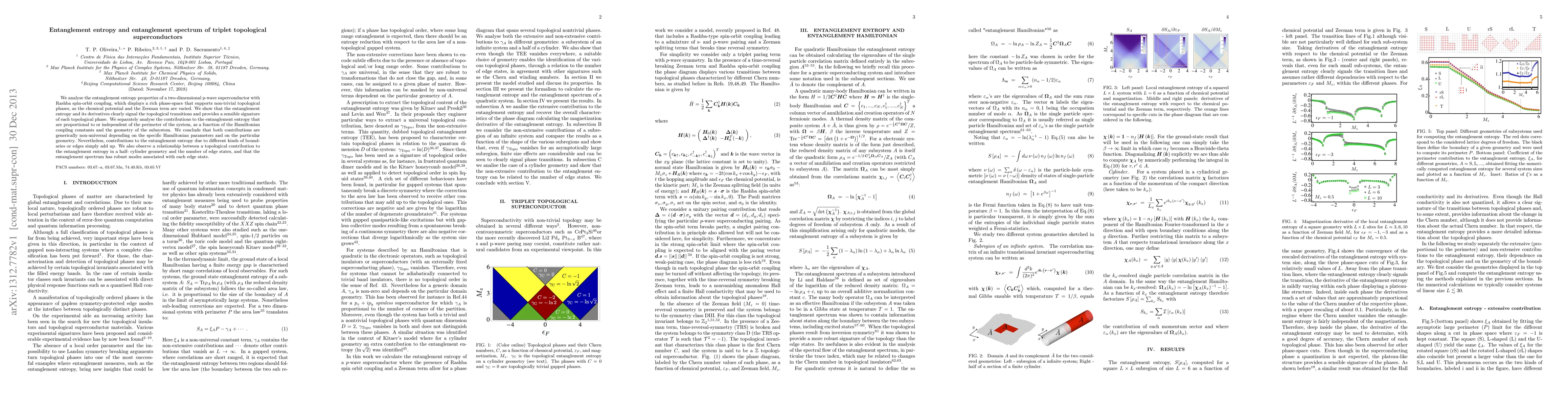 This research investigates the entanglement entropy and spectrum of a two-dimensional p-wave superconductor with Rashba spin-orbit coupling, demonstrating that these properties signal topological phase transitions. Both universal and non-universal contributions to the entanglement entropy are found to depend on the system's geometry and Hamiltonian parameters, while edge states correspond to robust modes in the entanglement spectrum.