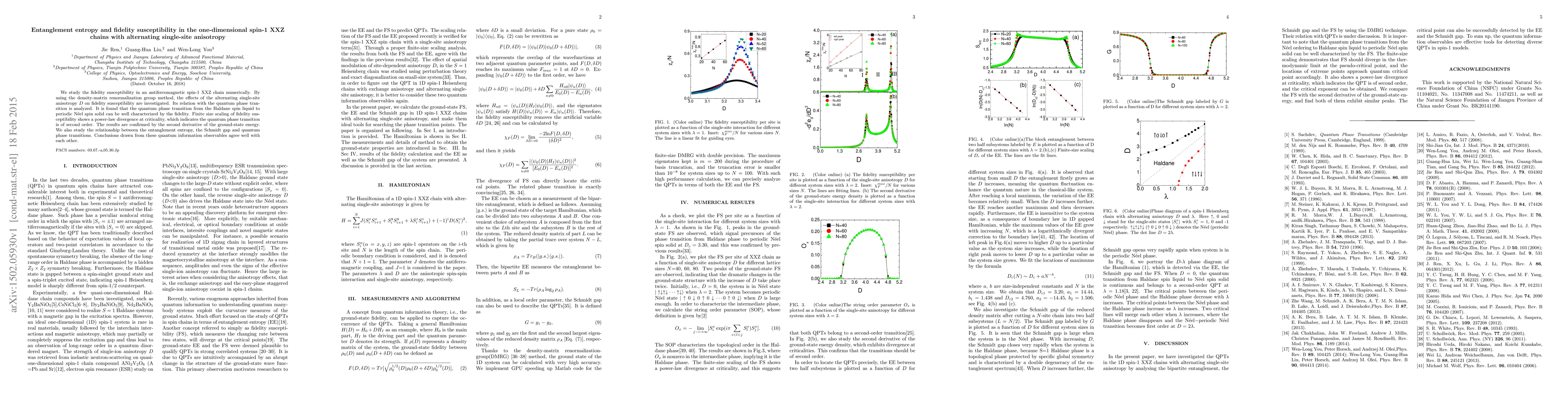 This paper investigates the fidelity susceptibility and entanglement entropy in a one-dimensional spin-1 XXZ chain with alternating anisotropy, revealing a second-order quantum phase transition from a Haldane spin liquid to a Néel spin solid. The study confirms the transition's nature via power-law divergence in fidelity susceptibility and corroborates findings with the second derivative of ground-state energy.