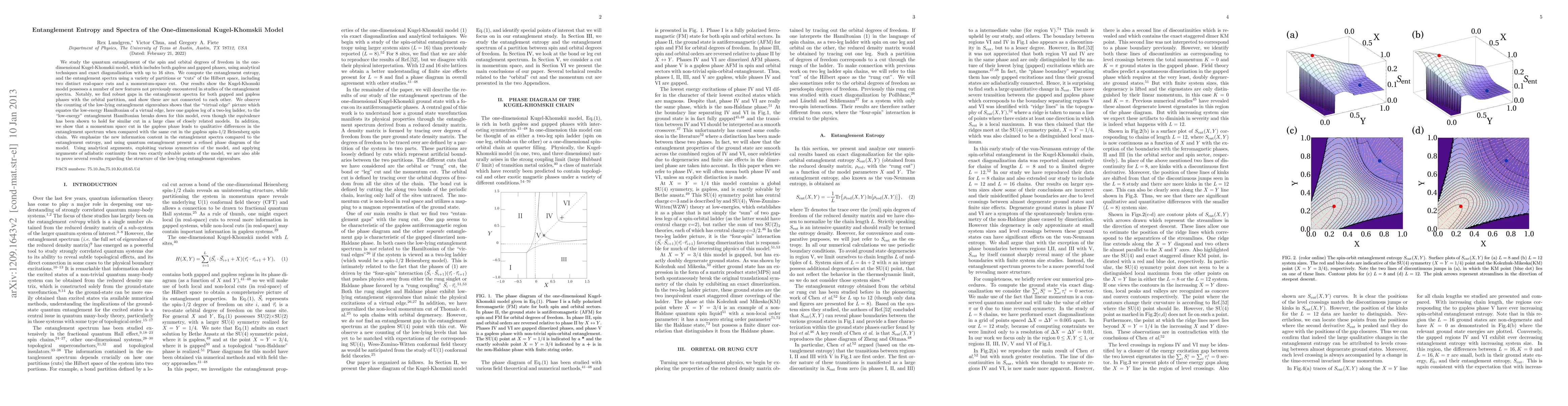 The paper presents detailed analytical and numerical studies of entanglement entropy and spectra in the one-dimensional Kugel-Khomskii model, revealing new features and providing a refined phase diagram based on entanglement properties.