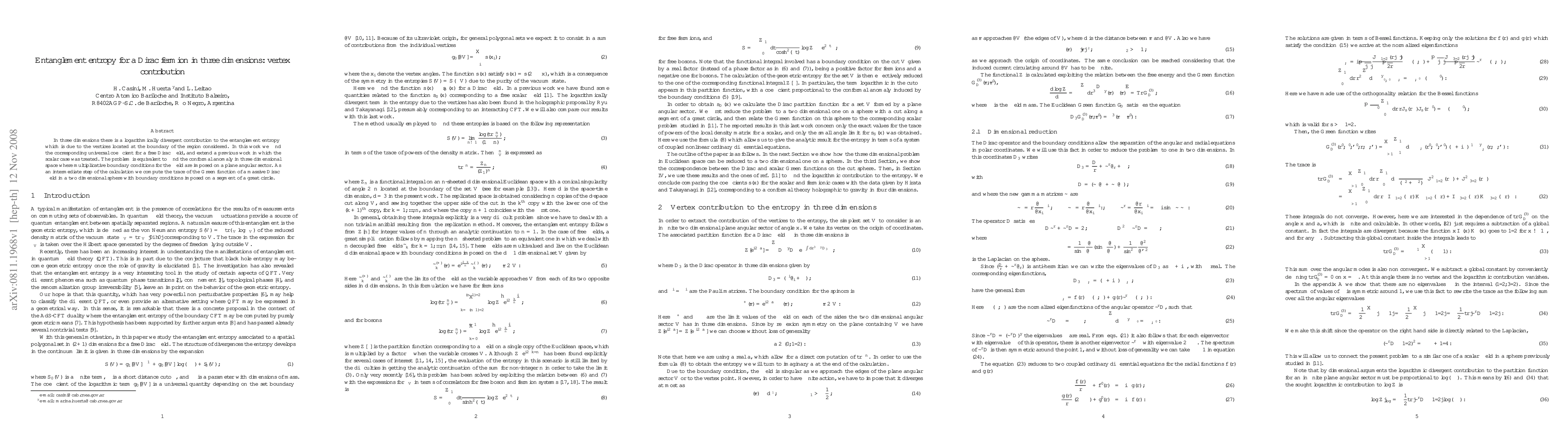 This paper calculates a universal coefficient for entanglement entropy in three dimensions for a free Dirac field, finding a logarithmically divergent contribution at the boundary of considered regions.