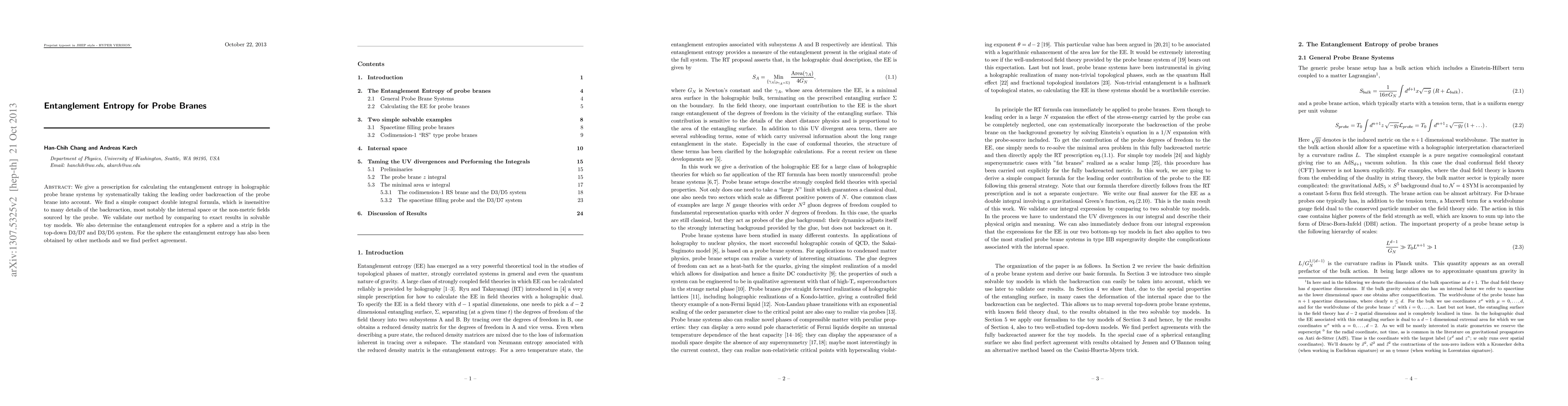 The research presents a prescription for calculating entanglement entropy in holographic probe brane systems, systematically taking the leading order backreaction of the probe brane into account, resulting in a compact double integral formula.