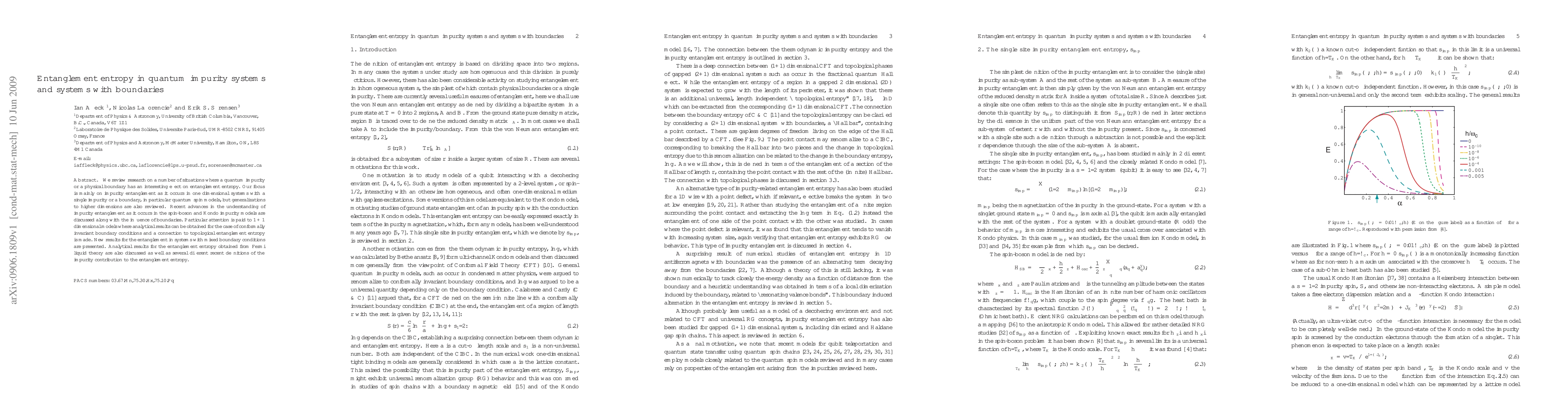 This paper reviews the entanglement entropy in quantum impurity systems and systems with boundaries, focusing on one-dimensional quantum spin models, including the spin-boson and Kondo impurity models. It highlights analytical results for conformally invariant boundary conditions and presents new findings on mixed boundary conditions, alongside a discussion on Fermi liquid theory and various definitions of impurity contributions to entanglement entropy.