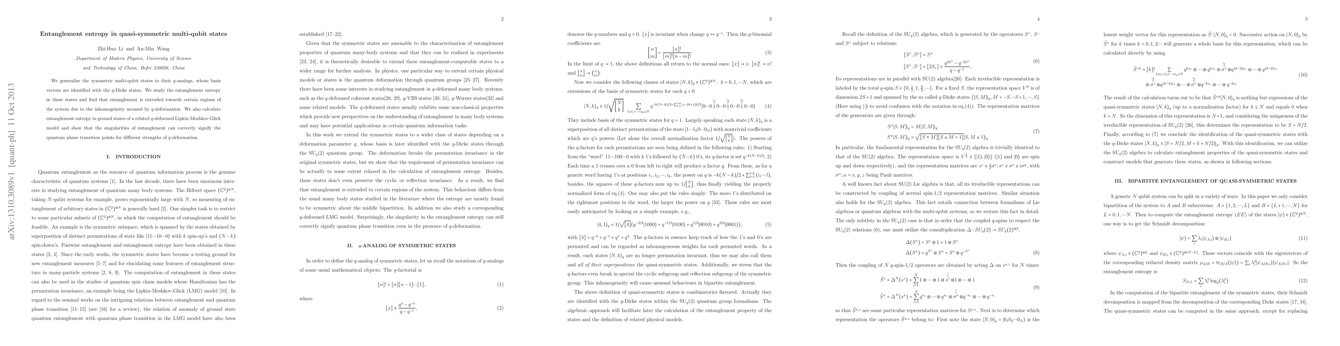 This paper generalizes symmetric multi-qubit states to q-analogs using q-Dicke states and examines the entanglement entropy, revealing that q-deformation induces inhomogeneity leading to localized entanglement. It also demonstrates that entanglement entropy singularities in a q-deformed Lipkin-Meshkov-Glick model accurately mark quantum phase transition points.