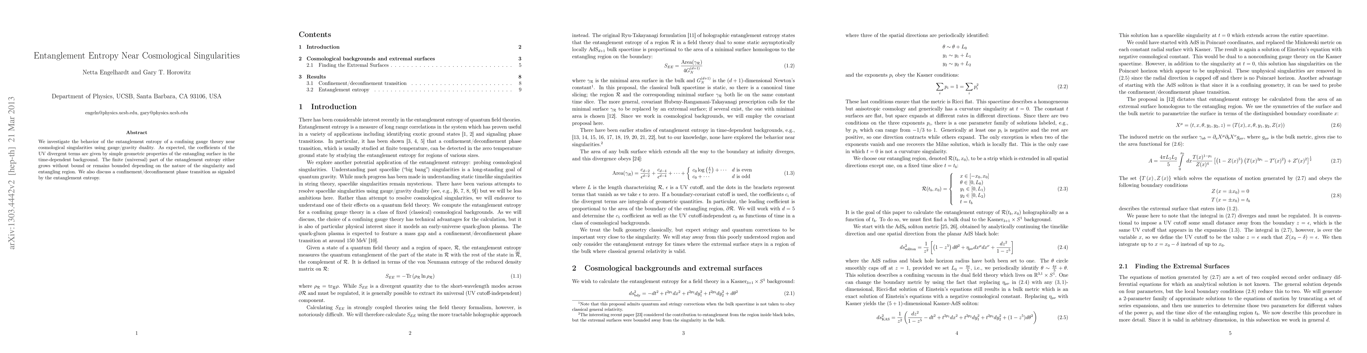 Researchers studied entanglement entropy near cosmological singularities using gauge/gravity duality, finding that it can grow without bound or remain bounded depending on the nature of the singularity.