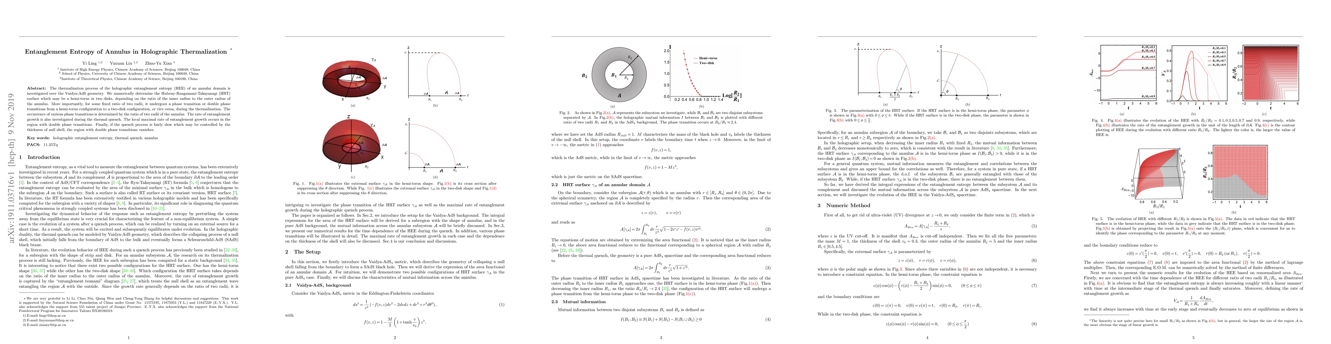 Researchers studied how a region of space called an annulus 'heats up' in a holographic model, finding that it undergoes phase transitions as it gains entanglement, with the rate of growth being highest at these points.