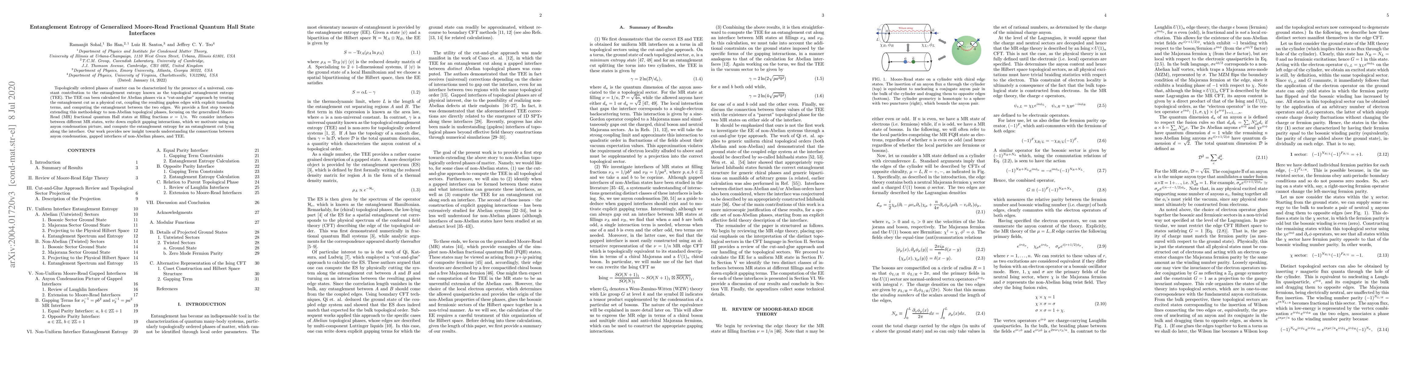 This paper calculates the topological entanglement entropy (TEE) for interfaces between generalized Moore-Read fractional quantum Hall states, extending the "cut-and-glue" approach to non-Abelian topological phases and providing insights into the relationship between anyon condensation and gapped interfaces.
