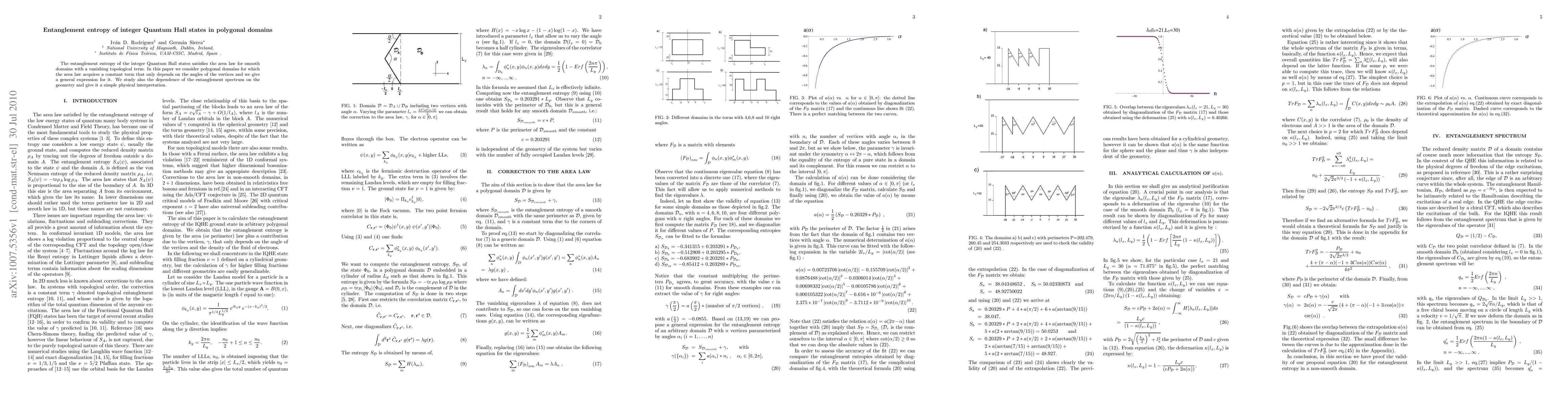 The entanglement entropy of the integer Quantum Hall states satisfies the area law for smooth domains with a vanishing topological term. In this paper we consider polygonal domains for which the area law acquires a constant term that only depends on the angles of the vertices and we give a general expression for it. We study also the dependence of the entanglement spectrum on the geometry and give it a simple physical interpretation.