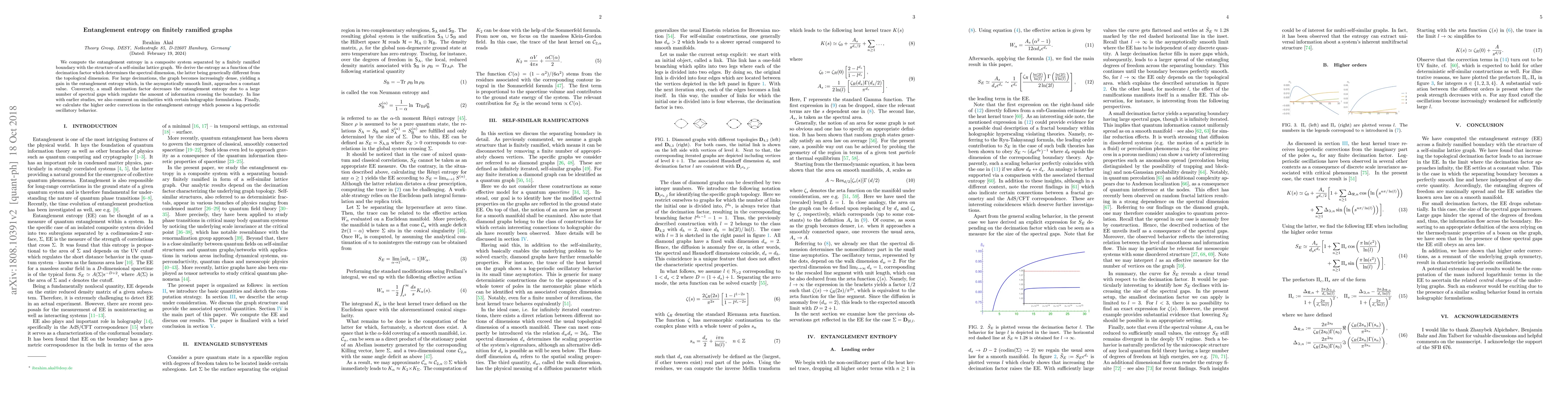 We compute the entanglement entropy in a composite system separated by a finitely ramified boundary with the structure of a self-similar lattice graph. We derive the entropy as a function of the decimation factor which determines the spectral dimension, the latter being generically different from the topological dimension. For large decimations, the graph becomes increasingly dense, yielding a gain in the entanglement entropy which, in the asymptotically smooth limit, approaches a constant value. Conversely, a small decimation factor decreases the entanglement entropy due to a large number of spectral gaps which regulate the amount of information crossing the boundary. In line with earlier studies, we also comment on similarities with certain holographic formulations. Finally, we calculate the higher order corrections in the entanglement entropy which possess a log-periodic oscillatory behavior.