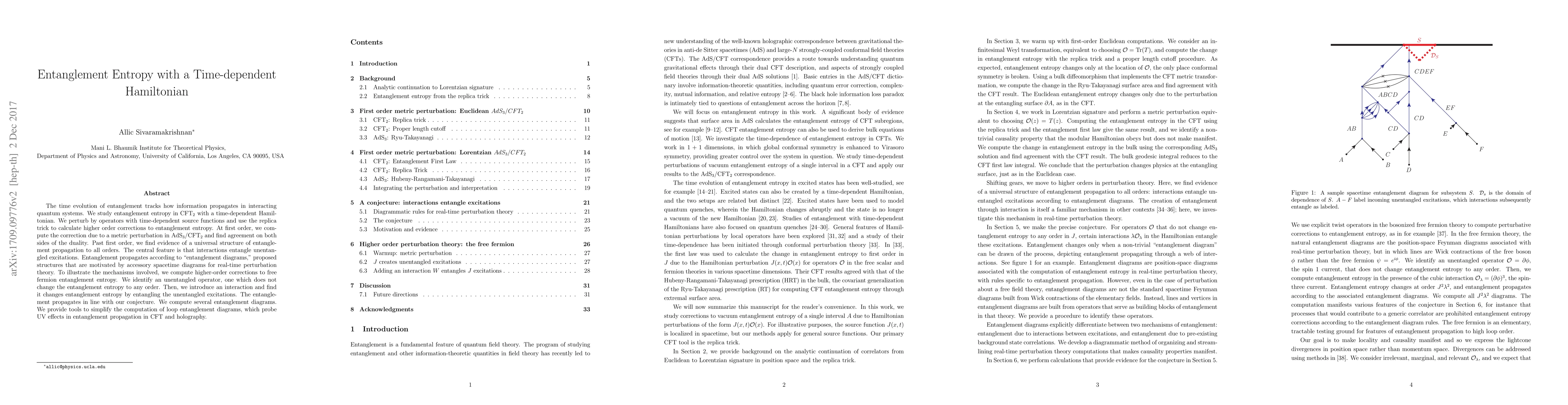 This research investigates entanglement entropy evolution in a time-dependent Hamiltonian within CFT$_2$, discovering a universal structure for entanglement propagation. It employs the replica trick to find corrections, showing interactions entangle previously unentangled excitations according to proposed "entanglement diagrams," and provides tools for simplifying higher-order entanglement diagram computations.