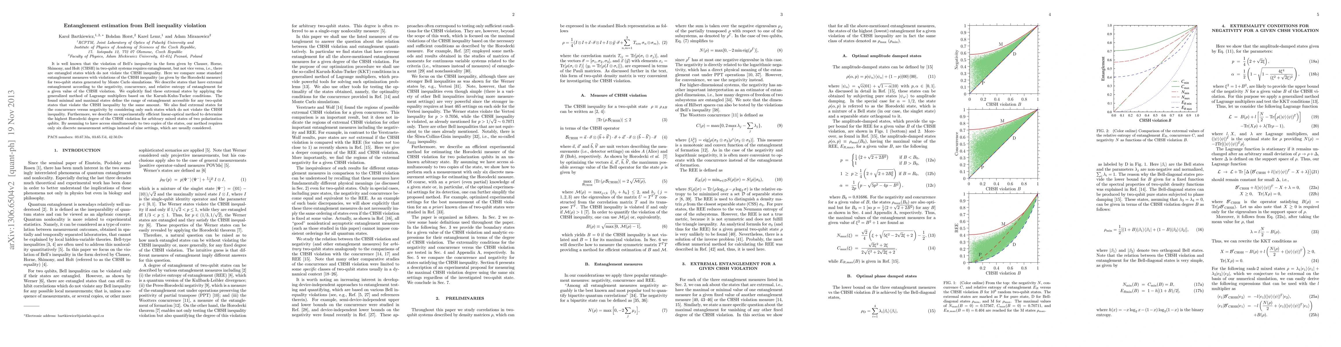 This paper investigates the relationship between Bell inequality violations and entanglement measures in two-qubit systems, identifying extremal states that maximize or minimize entanglement for given CHSH inequality violations. It proposes an efficient linear-optical method requiring fewer measurement settings to determine the highest degree of CHSH violation for mixed states.