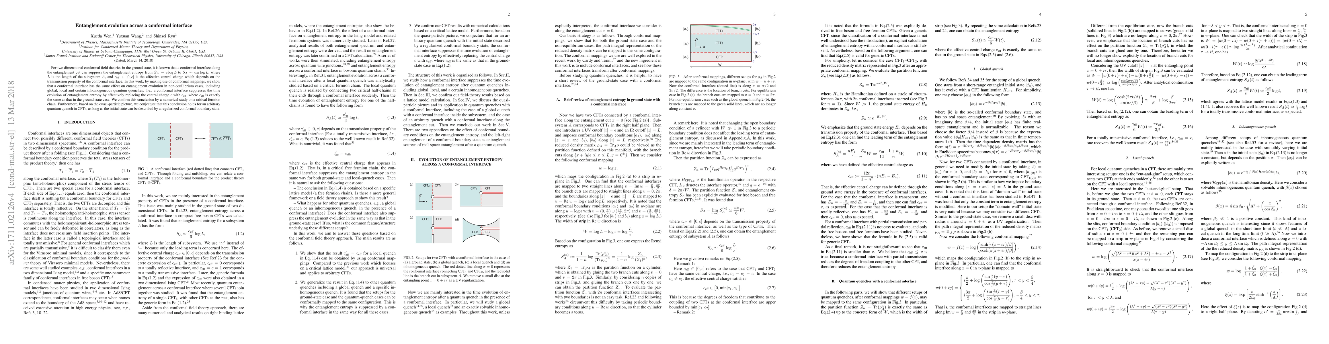This paper demonstrates that a conformal interface reduces the entanglement entropy evolution in two-dimensional conformal field theories (CFTs) during non-equilibrium processes, akin to its effect in ground state scenarios, by substituting the central charge with an effective central charge $c_{\text{eff}}$. Numerical results support this for a critical fermion chain, and the authors conjecture the broader applicability of this phenomenon in CFTs.
