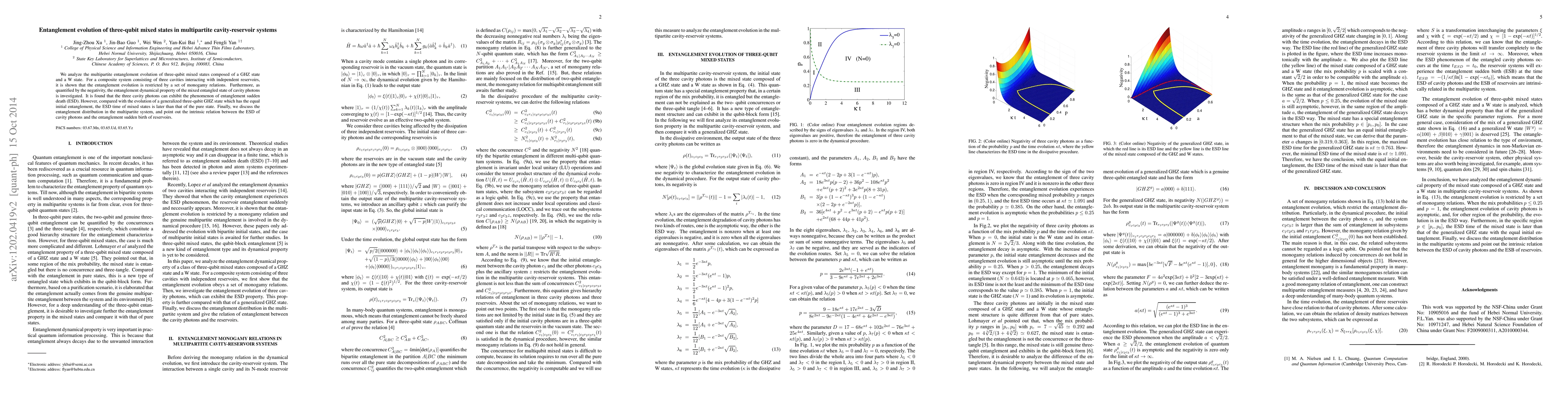 This paper investigates the entanglement evolution of mixed three-qubit states (comprising GHZ and W states) in multipartite cavity-reservoir systems, revealing that entanglement is governed by monogamy relations. It finds that entanglement sudden death occurs later in mixed states compared to pure states, and discusses the relationship between ESD and entanglement sudden birth in reservoirs.