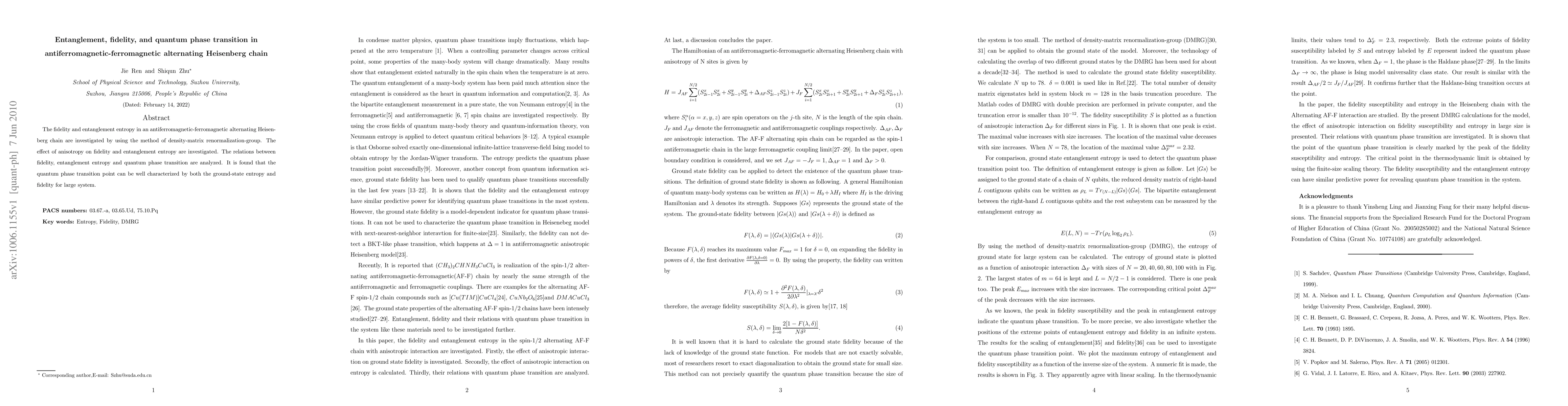 This study uses density-matrix renormalization-group to investigate fidelity and entanglement entropy in an antiferromagnetic-ferromagnetic alternating Heisenberg chain, revealing their relationships with quantum phase transitions. The findings suggest fidelity and entropy can characterize the transition point effectively in large systems.