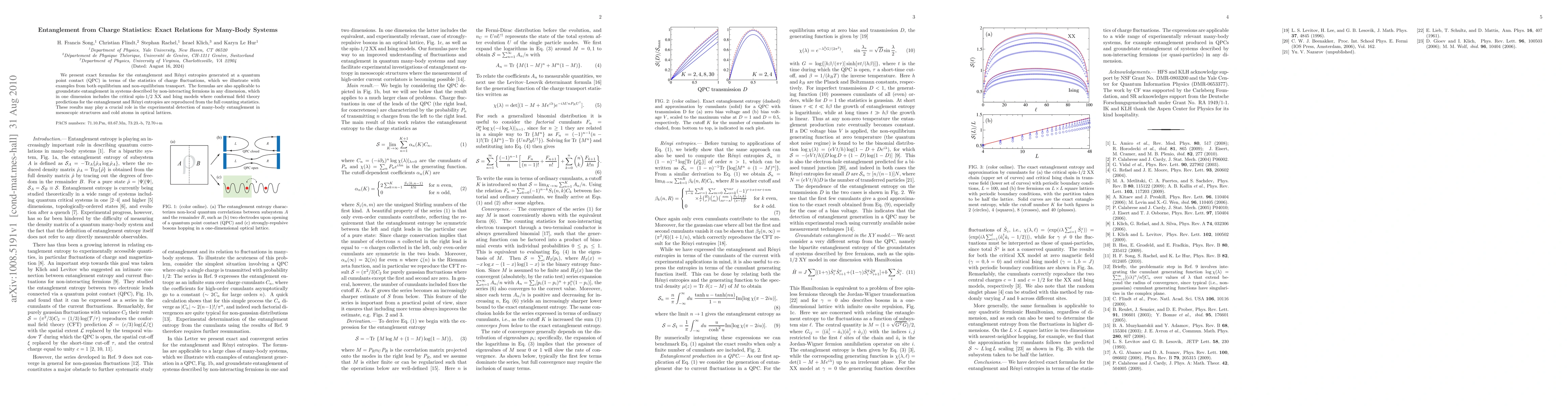 Researchers developed exact formulas for entanglement and entropy in quantum systems based on charge statistics, which can help detect many-body entanglement in mesoscopic structures and optical lattices.
