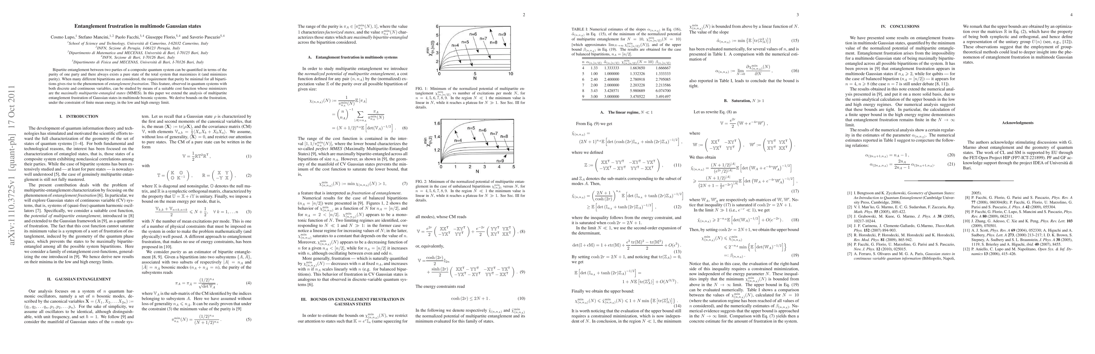 The paper presents a detailed analysis of entanglement frustration in multimode Gaussian states, deriving bounds and examining their behavior in low and high energy limits.