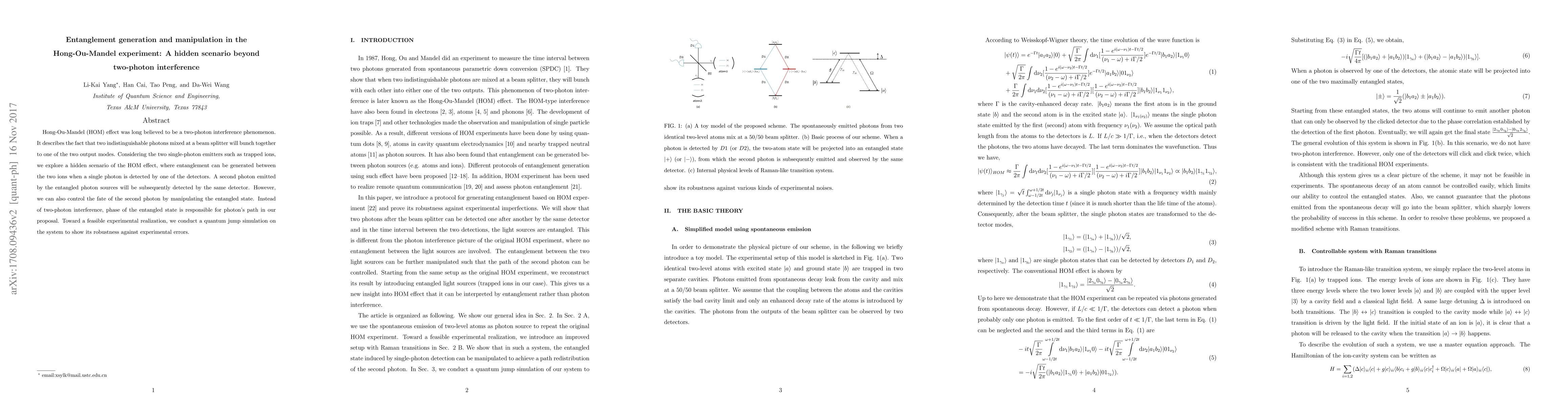 Researchers found a hidden scenario of entanglement generation in the Hong-Ou-Mandel experiment, where a single photon detection controls the path of two subsequent photons, rather than two-photon interference.