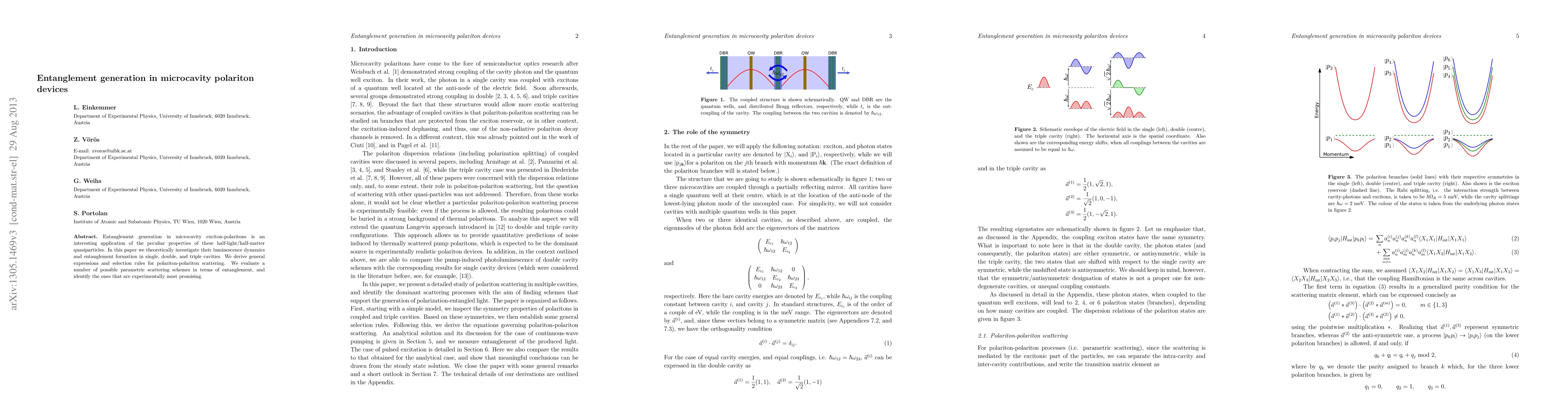 This paper theoretically explores the dynamics and entanglement generation in exciton-polaritons within single, double, and triple microcavity systems. It derives expressions and selection rules for polariton scattering, evaluating various parametric scattering schemes to identify the most promising for experimental realization.