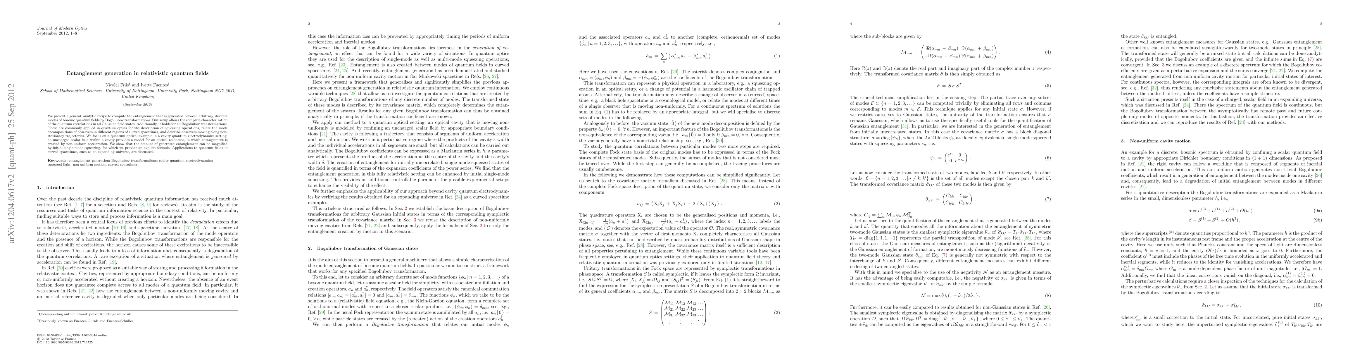 Researchers developed a method to calculate entanglement in quantum fields using Bogoliubov transformations, which can create entanglement in various physical systems, including optical resonators and curved spacetimes.