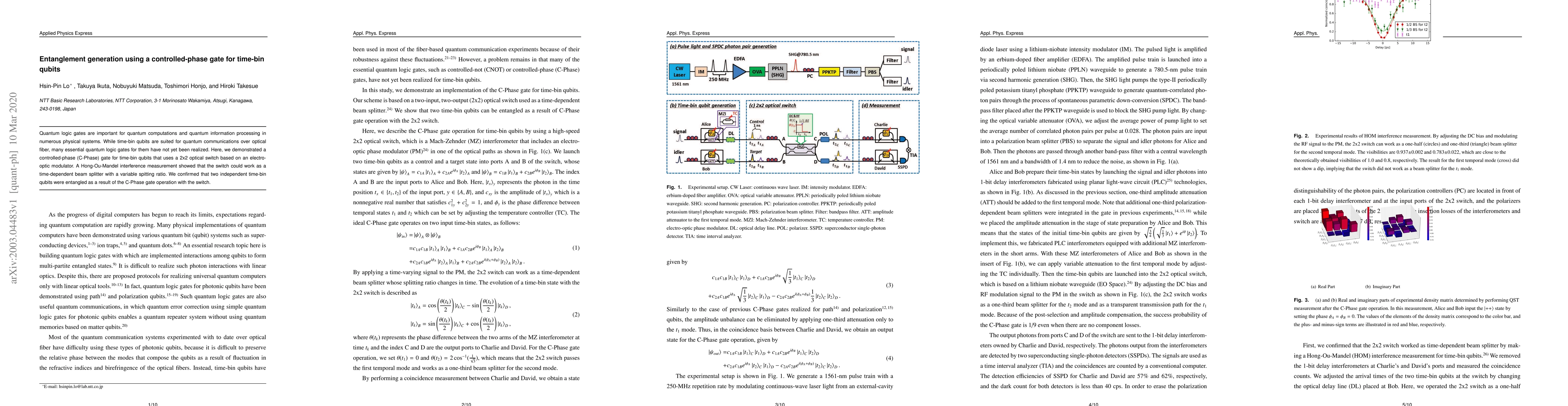 This paper demonstrates a controlled-phase gate for time-bin qubits using a 2x2 optical switch based on an electro-optic modulator, showing successful entanglement generation through a Hong-Ou-Mandel interference measurement. The switch functions as a time-dependent beam splitter, enabling essential quantum logic operations for quantum communications over optical fibers.