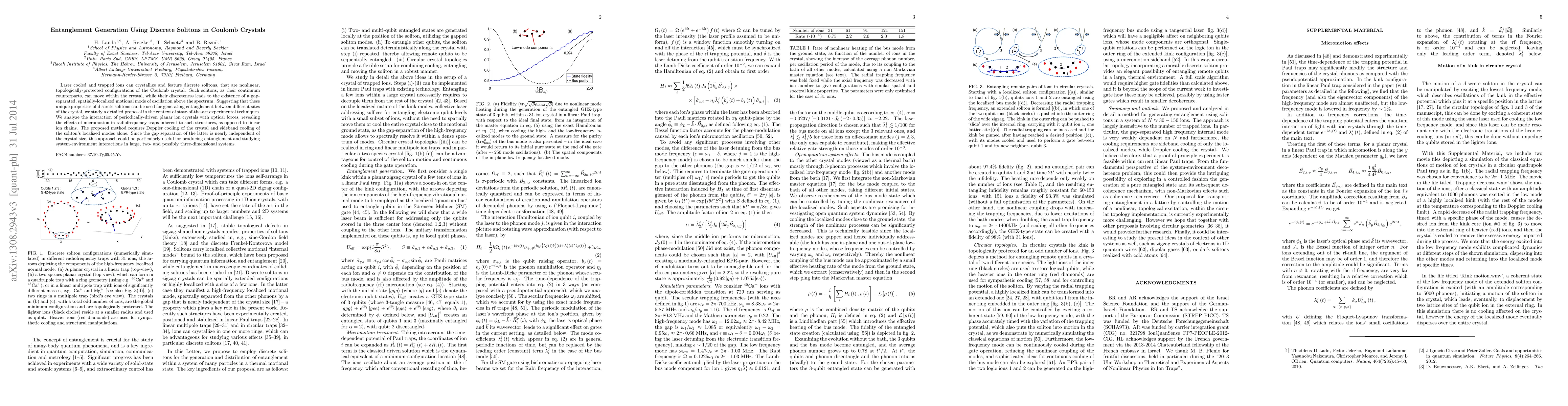 Researchers propose using discrete solitons in Coulomb crystals to generate entanglement between different sites of the crystal through Doppler cooling and sideband cooling methods. This approach shows promise for producing entanglement in large systems with minimal environmental disturbance.