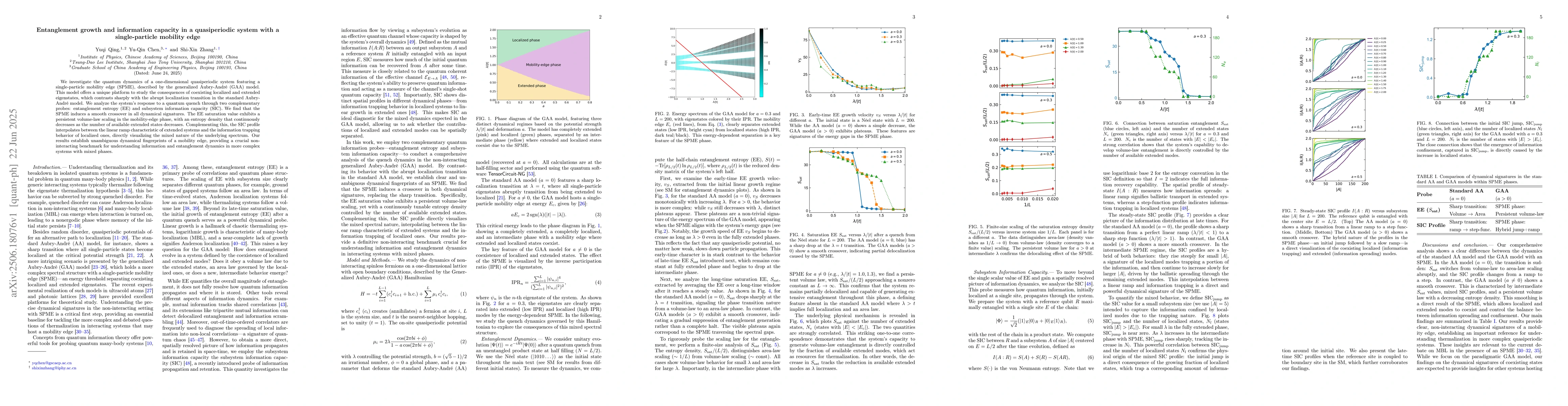 We investigate the quantum dynamics of a one-dimensional quasiperiodic system featuring a single-particle mobility edge (SPME), described by the generalized Aubry-Andr\'e (GAA) model. This model offers a unique platform to study the consequences of coexisting localized and extended eigenstates, which contrasts sharply with the abrupt localization transition in the standard Aubry-Andr\'e model. We analyze the system's response to a quantum quench through two complementary probes: entanglement entropy (EE) and subsystem information capacity (SIC). We find that the SPME induces a smooth crossover in all dynamical signatures. The EE saturation value exhibits a persistent volume-law scaling in the mobility-edge phase, with an entropy density that continuously decreases as the number of available extended states decreases. Complementing this, the SIC profile interpolates between the linear ramp characteristic of extended systems and the information trapping behavior of localized ones, directly visualizing the mixed nature of the underlying spectrum. Our results establish unambiguous dynamical fingerprints of a mobility edge, providing a crucial non-interacting benchmark for understanding information and entanglement dynamics in more complex systems with mixed phases.