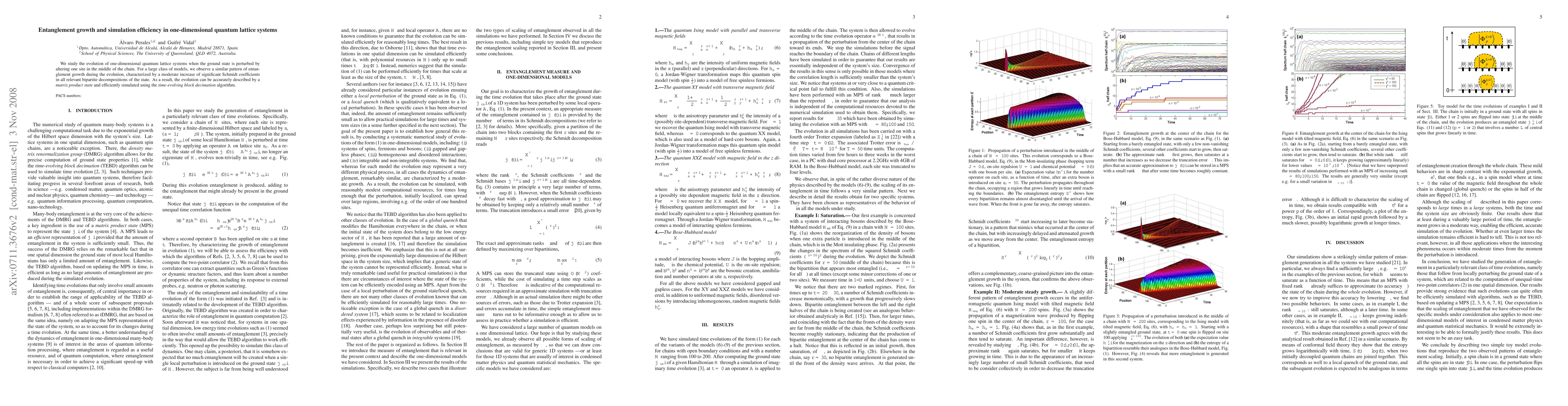 This paper investigates the entanglement dynamics in one-dimensional quantum lattice systems following a localized perturbation, revealing consistent entanglement growth patterns that allow efficient simulation using the time-evolving block decimation algorithm. The study highlights the utility of matrix product states for describing these systems.