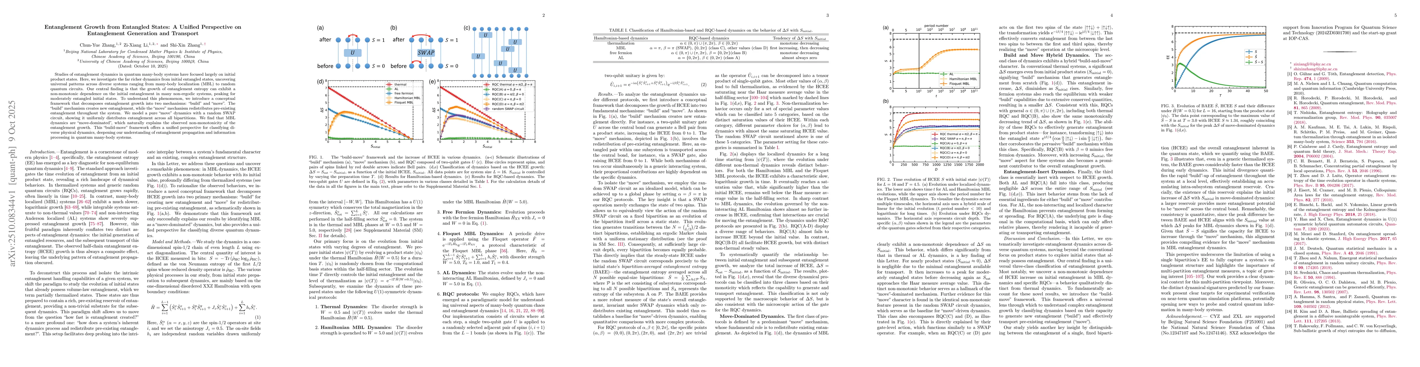Studies of entanglement dynamics in quantum many-body systems have focused largely on initial product states. Here, we investigate the far richer dynamics from initial entangled states, uncovering universal patterns across diverse systems ranging from many-body localization (MBL) to random quantum circuits. Our central finding is that the growth of entanglement entropy can exhibit a non-monotonic dependence on the initial entanglement in many non-ergodic systems, peaking for moderately entangled initial states. To understand this phenomenon, we introduce a conceptual framework that decomposes entanglement growth into two mechanisms: ``build'' and ``move''. The ``build'' mechanism creates new entanglement, while the ``move'' mechanism redistributes pre-existing entanglement throughout the system. We model a pure ``move'' dynamics with a random SWAP circuit, showing it uniformly distributes entanglement across all bipartitions. We find that MBL dynamics are ``move-dominated'', which naturally explains the observed non-monotonicity of the entanglement growth. This ``build-move'' framework offers a unified perspective for classifying diverse physical dynamics, deepening our understanding of entanglement propagation and information processing in quantum many-body systems.