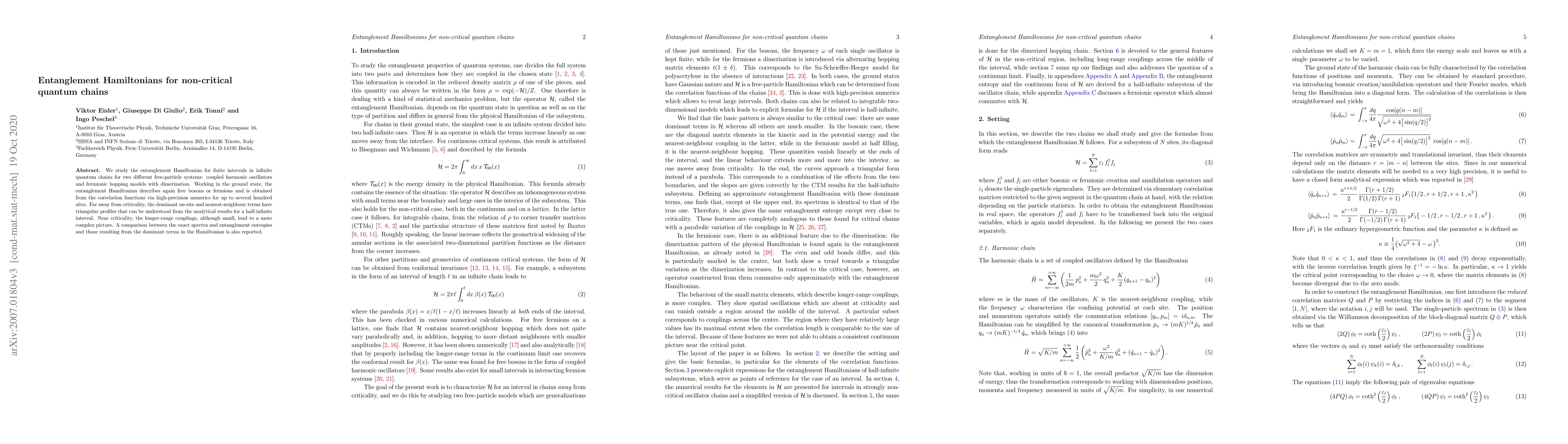 This paper investigates the entanglement Hamiltonian for finite intervals in non-critical quantum chains, focusing on coupled harmonic oscillators and dimerized fermionic models. The study reveals that the entanglement Hamiltonian retains free boson or fermion characteristics, derived from correlation functions and high-precision numerics.