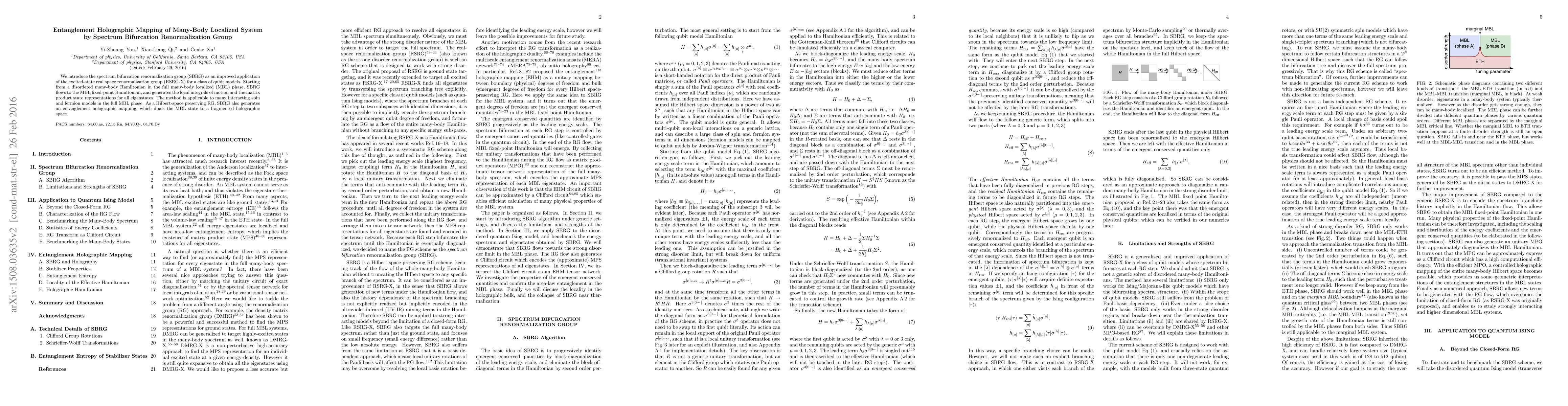This paper introduces the spectrum bifurcation renormalization group (SBRG) to study many-body localized systems without truncating the Hilbert space. The SBRG method maps out the phase diagram of a 1D interacting Majorana chain with strong disorder, revealing an entanglement holographic mapping that duals the MBL state to a fragmented holographic space with small blackholes.