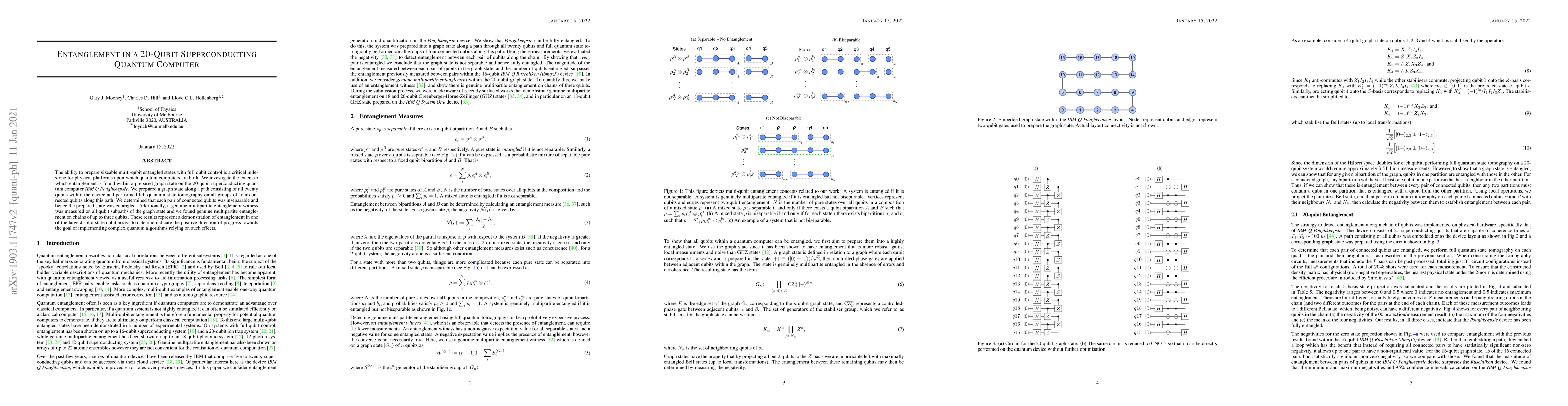 Towards realising larger scale quantum algorithms, the ability to prepare sizeable multi-qubit entangled states with full qubit control is used as a benchmark for quantum technologies. We investigate the extent to which entanglement is found within a prepared graph state on the 20-qubit superconducting quantum computer, IBM Q Poughkeepsie. We prepared a graph state along a path consisting of all twenty qubits within Poughkeepsie and performed full quantum state tomography on all groups of four connected qubits along this path. We determined that each pair of connected qubits was inseparable and hence the prepared state was entangled. Additionally, a genuine multipartite entanglement witness was measured on all qubit subpaths of the graph state and we found genuine multipartite entanglement on chains of up to three qubits.
