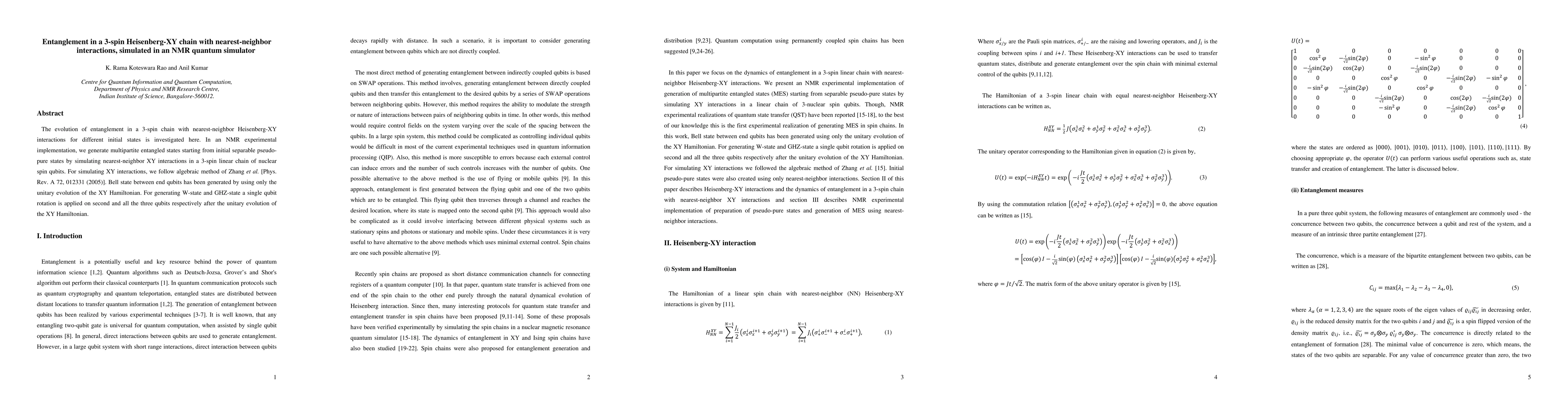 This paper investigates the evolution of entanglement in a 3-spin Heisenberg-XY chain using an NMR quantum simulator. It generates multipartite entangled states, including Bell, W, and GHZ states, by simulating nearest-neighbor interactions and applying single qubit rotations post-evolution.