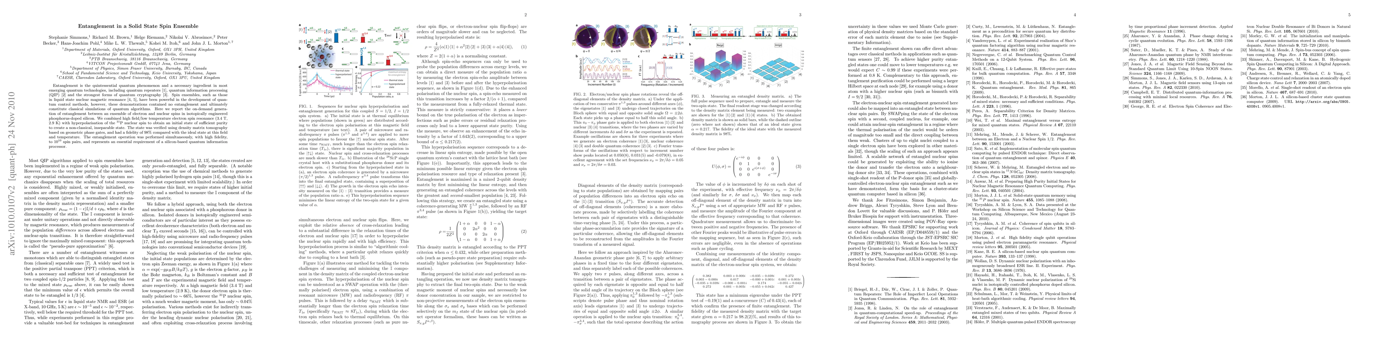 Researchers have successfully created entanglement between electron and nuclear spins in silicon at high field and low temperature conditions, paving the way for a silicon-based quantum information processor.