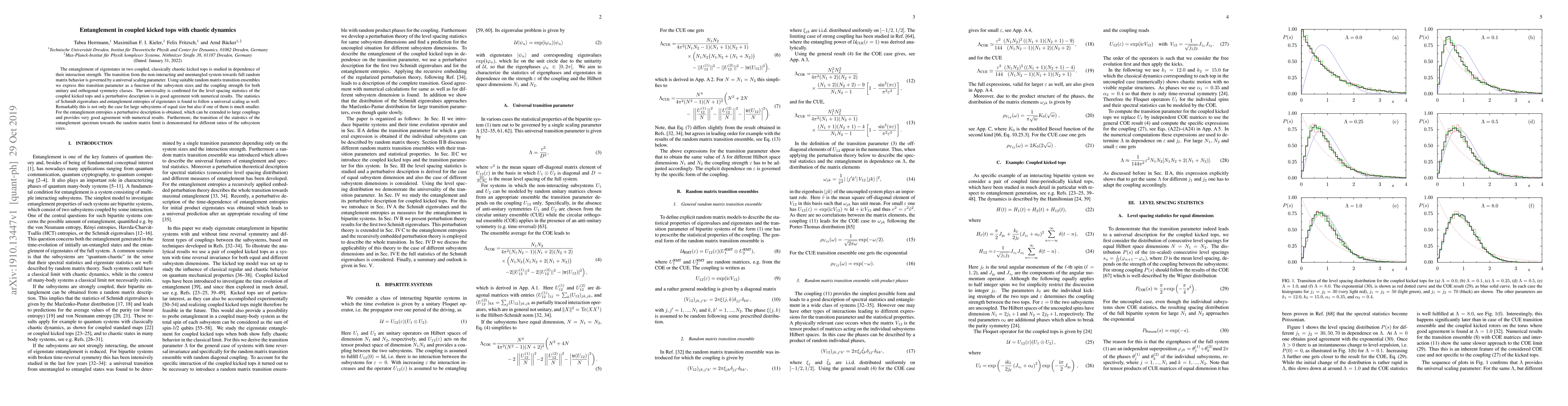 Research on coupled kicked tops reveals that entanglement in chaotic systems exhibits universal scaling behavior, even with unequal subsystem sizes, and can be described using random matrix theory.