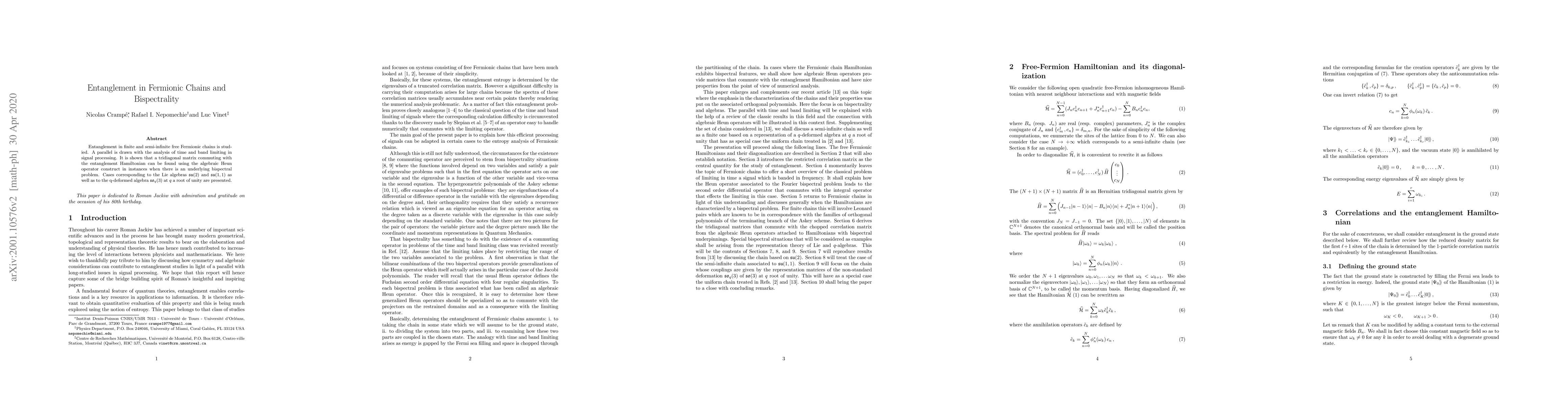 Researchers investigate entanglement in Fermionic chains and find a connection to signal processing concepts like time and band limiting. They identify tridiagonal matrices that commute with the entanglement Hamiltonian in specific cases.