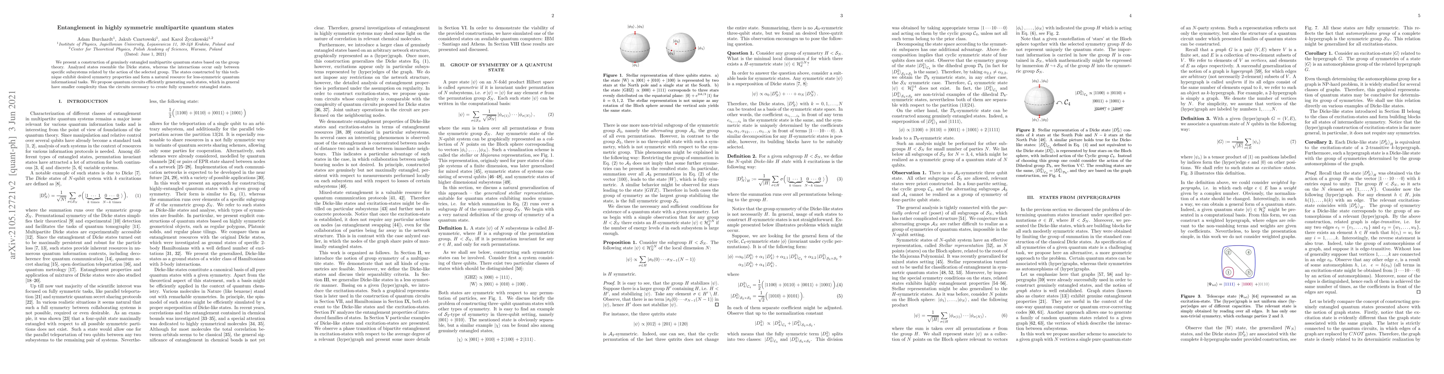 This paper constructs genuinely entangled multipartite quantum states using group theory, resembling Dicke states with interactions limited to specific subsystems. The proposed quantum circuits for generating these states have lower complexity compared to those for fully symmetric entangled states.