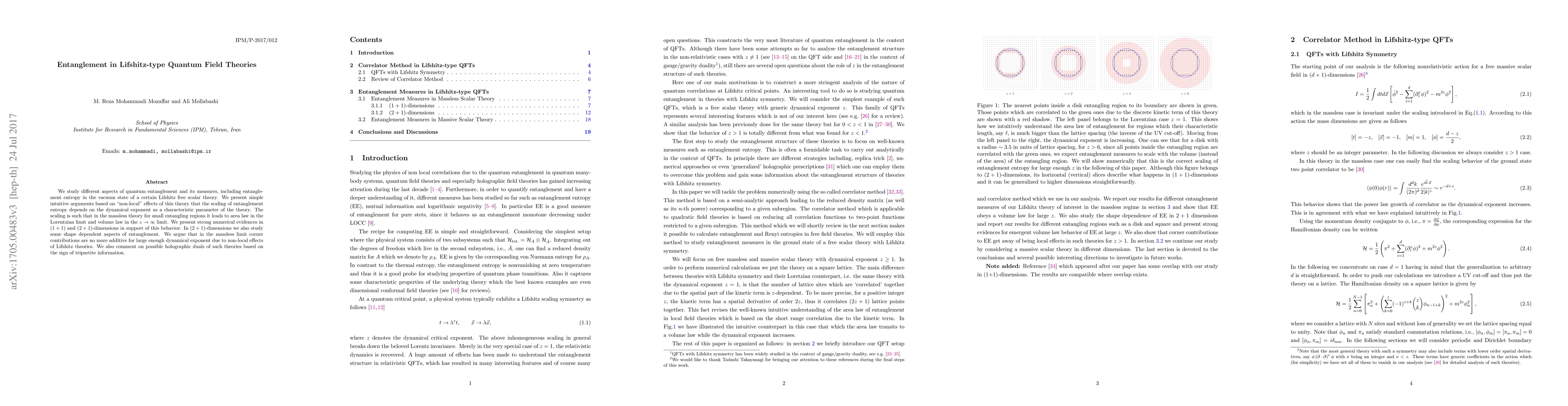 This paper investigates quantum entanglement in Lifshitz-type quantum field theories, showing that entanglement entropy scaling depends on the dynamical exponent. Numerical evidence supports area and volume law behaviors in different dimensions, highlighting non-local effects that affect entanglement in the massless limit.
