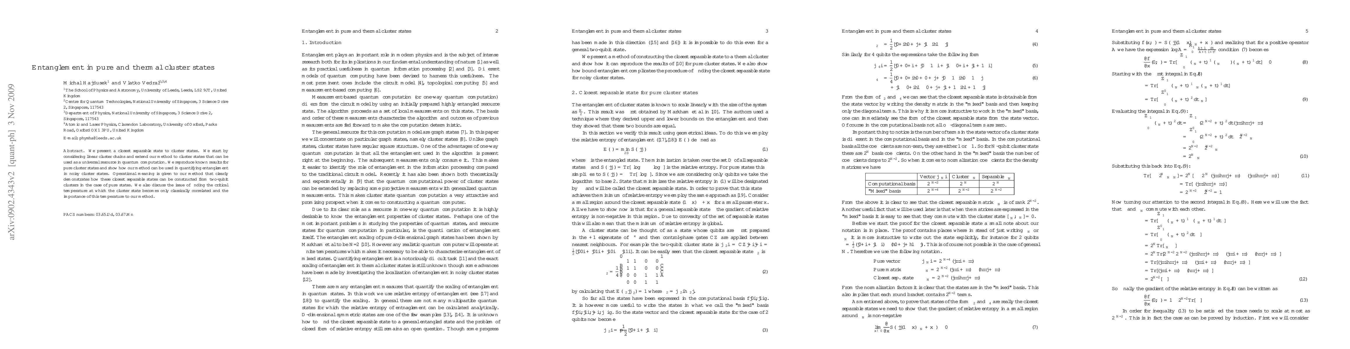 We present a closest separable state to cluster states. We start by considering linear cluster chains and extend our method to cluster states that can be used as a universal resource in quantum computation. We reproduce known results for pure cluster states and show how our method can be used in quantifying entanglement in noisy cluster states. Operational meaning is given to our method that clearly demonstrates how these closest separable states can be constructed from two-qubit clusters in the case of pure states. We also discuss the issue of finding the critical temperature at which the cluster state becomes only classically correlated and the importance of this temperature to our method.