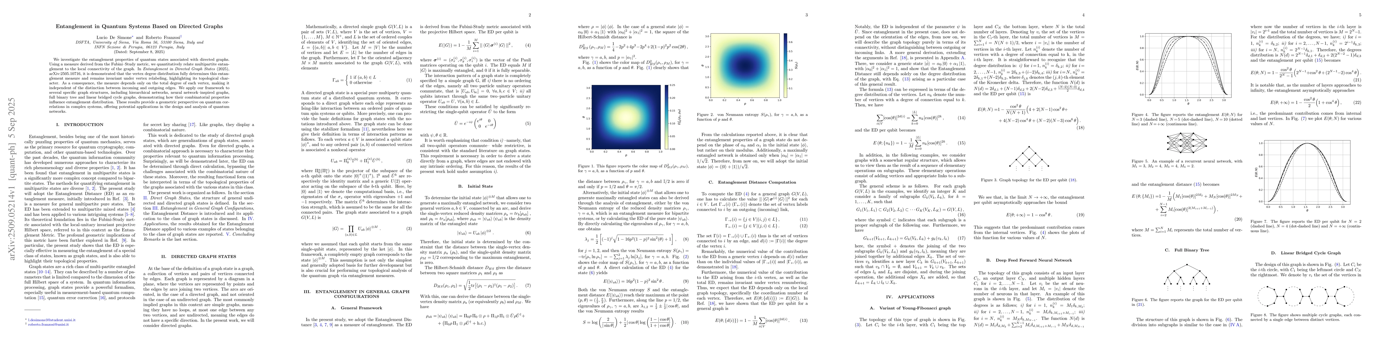 We investigate the entanglement properties of quantum states associated with directed graphs. Using a measure derived from the Fubini-Study metric, we quantitatively relate multipartite entanglement to the local connectivity of the graph. In \emph{Entanglement in Directed Graph States}, (2025), arXiv:2505.10716, it is demonstrated that the vertex degree distribution fully determines this entanglement measure and remains invariant under vertex relabeling, highlighting its topological character. As a consequence, the measure depends only on the total degree of each vertex, making it independent of the distinction between incoming and outgoing edges. We apply our framework to several specific graph structures, including hierarchical networks, neural network-inspired graphs, full binary tree and linear bridged cycle graphs, demonstrating how their combinatorial properties influence entanglement distribution. These results provide a geometric perspective on quantum correlations in complex systems, offering potential applications in the design and analysis of quantum networks.