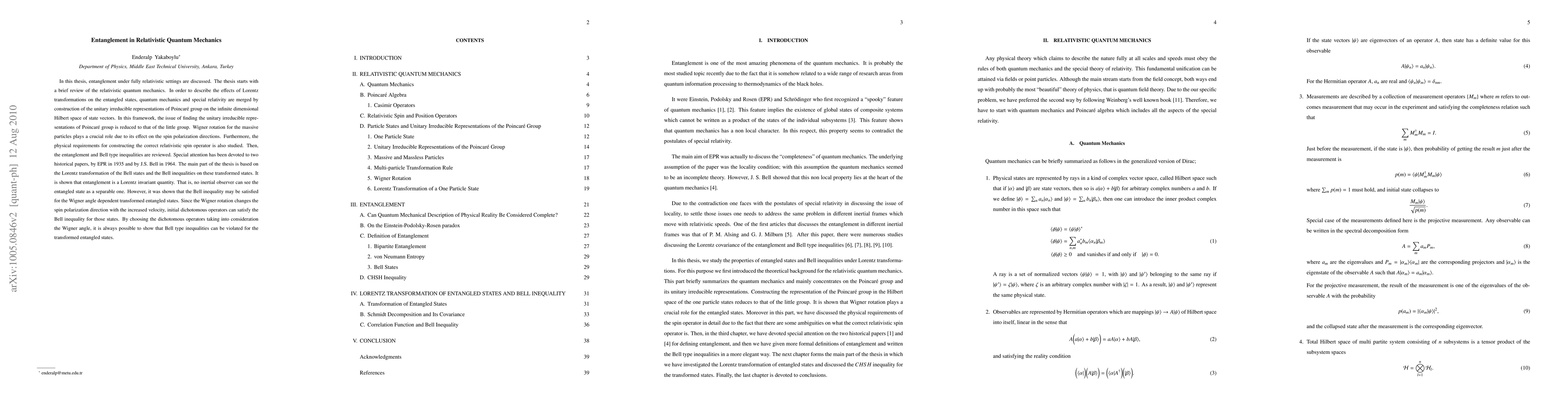 This thesis explores entanglement in relativistic quantum mechanics, merging quantum mechanics with special relativity through unitary irreducible representations of the Poincaré group. It demonstrates that entanglement is a Lorentz invariant, while the Bell inequalities can still be satisfied under certain conditions due to the effects of Wigner rotation on spin polarization.