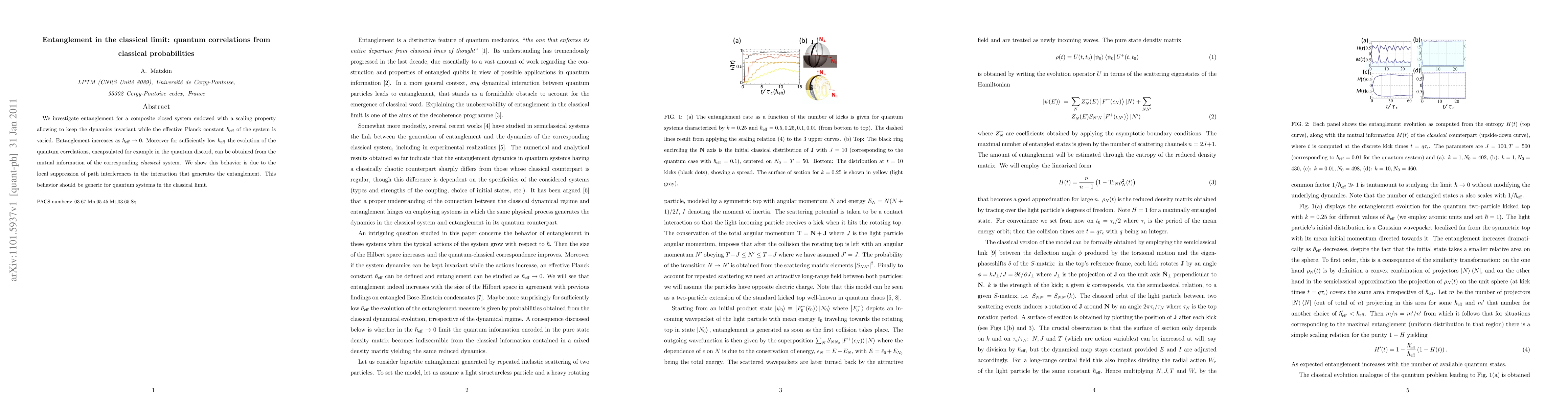 This paper explores how entanglement in a closed quantum system increases as the effective Planck constant approaches zero, leading to quantum correlations resembling those derived from classical probabilities. The study reveals that the suppression of path interferences in the interaction generating entanglement is the underlying mechanism for this classical limit behavior.