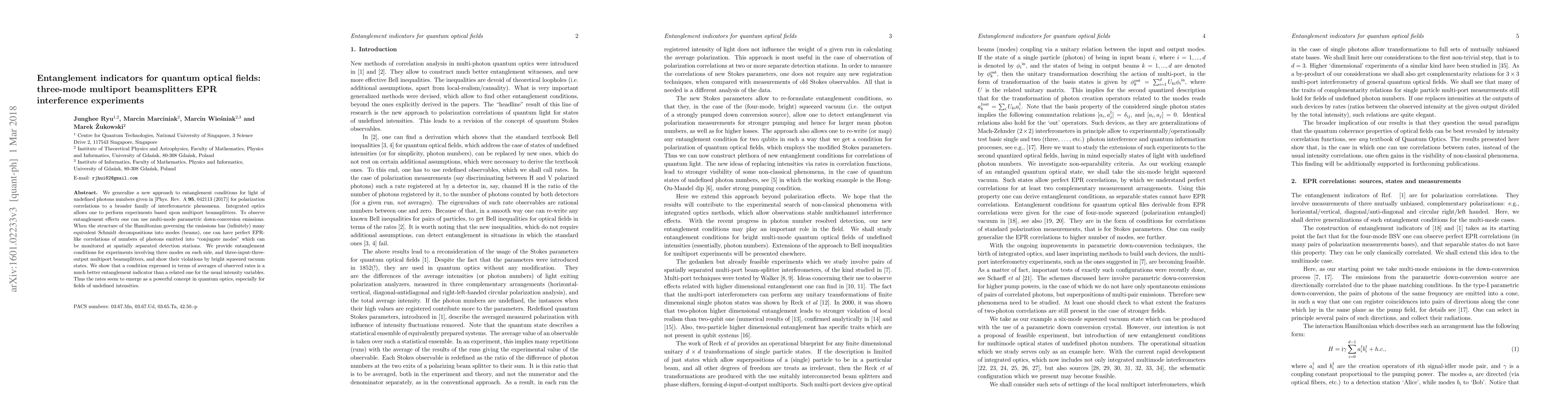 Researchers developed a new method to detect entanglement in quantum optical fields using three-mode multiport beamsplitters and EPR interference experiments. They found that a condition based on observed rates is a more effective entanglement indicator than traditional intensity variables.
