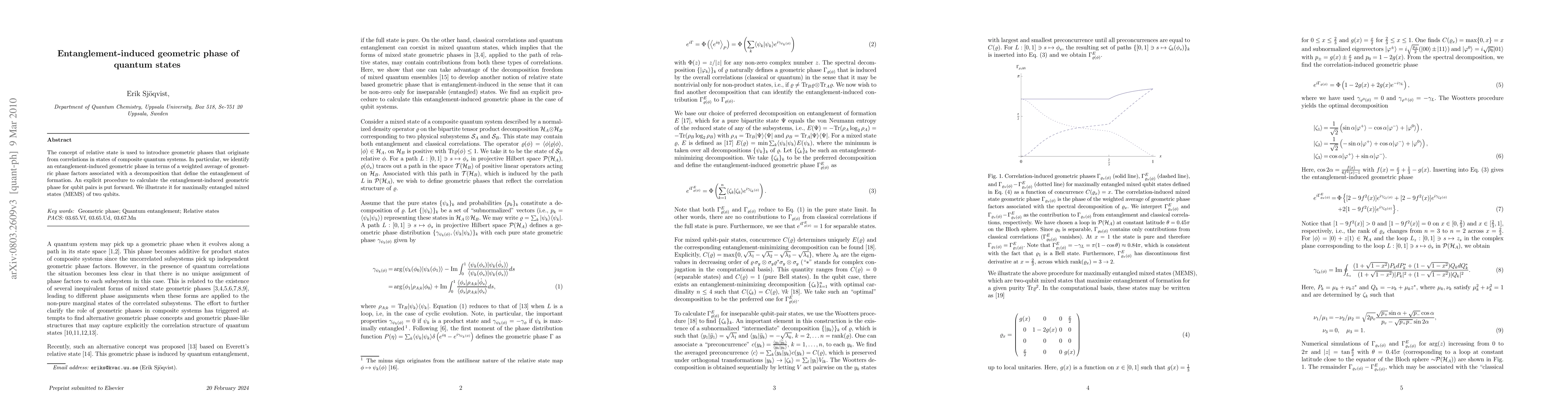 This paper explores geometric phases arising from entanglement in composite quantum systems, introducing an entanglement-induced geometric phase through relative state decomposition. An explicit method for calculating this phase is provided for qubit pairs, demonstrated using maximally entangled mixed states (MEMS).